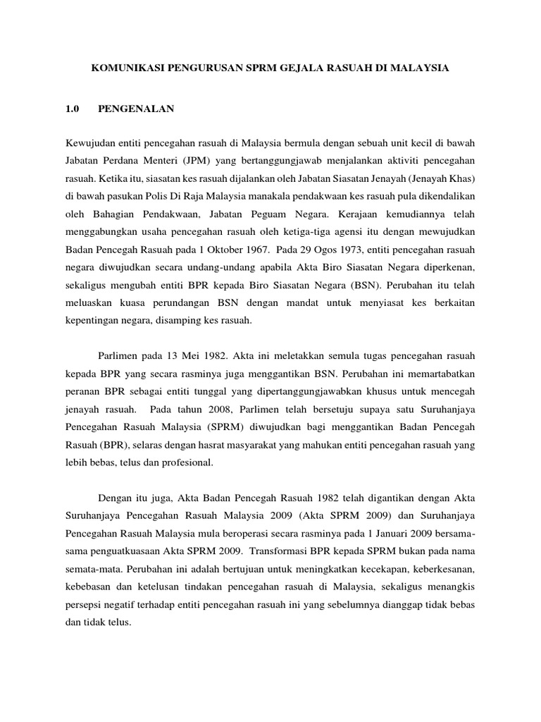 Bentuk Hukuman Yang Dikenakan Kepada Pesalah Rasuah : Hukuman diadakan bukanlah untuk menyeksa manusia sebaliknya adalah untuk menegakkan keadilan, menjadi pengajaran kepada masyarakat dan membela nasib mereka yang dianiaya atau ditindas.
