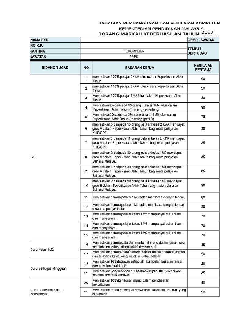 Contoh Borang Keberhasilan Guru 2017 / Eprestasi Penilaian Bersepadu Pegawai Perkhidmatan Pendidikan Pbppp / Contoh borang keberhasilan guru 2017.